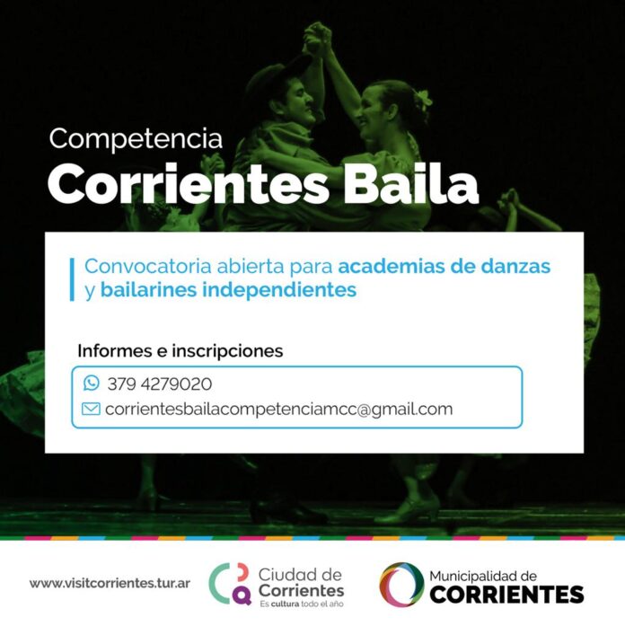 Con el objetivo de fomentar la difusión de las distintas modalidades de la danza, apoyar a los bailarines y a las instituciones, la Municipalidad de Corrientes presenta la convocatoria abierta para academias de danzas y bailarines independientes para participar de la Competencia “Corrientes Baila”.